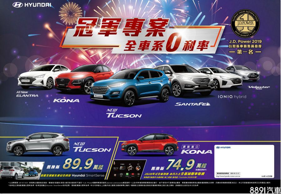 為減輕車主購車負擔,本月Hyundai推出冠軍專案,除提供全車系購車0利率,包含Elantra以及Tucson,配合政府舊換新補助,兩車分別只要59.9萬起、89.9萬起,若入主2020年式Kona,不僅全面加贈車聯網影音系統,政府舊換新補助價更只要74.9萬元起。