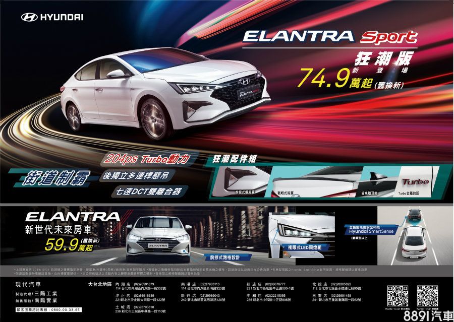 倘若喜歡熱血外觀,Elantra Sport狂潮版絕對不能錯過,不僅免費升級專屬個性化套件讓運動跑格更強烈,搭配合舊換新補助,限時優惠價74.9萬起。