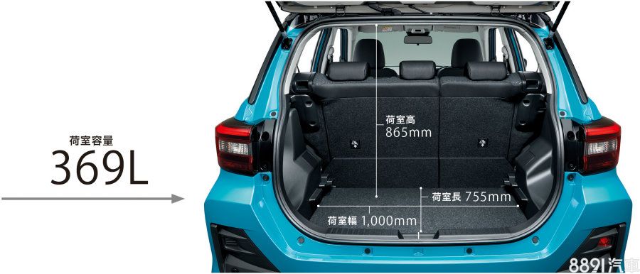 Raize的行李廂基本容量為369L,內寬度、深度和高度分別為1000、755、865mm,底板下方亦設計有凹槽,強調小車也能發揮極致置物空間機能的表現。