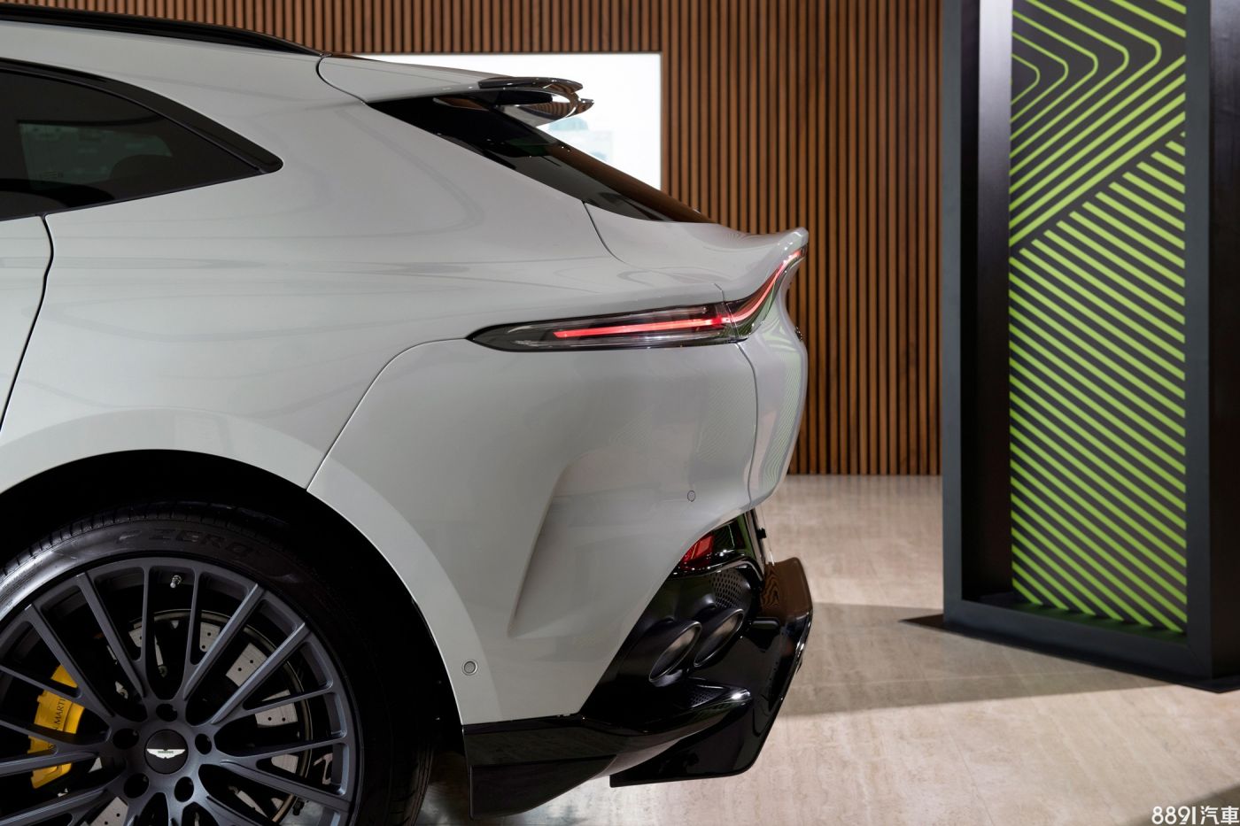 眼前的DBX 707全車細節都因應性能而更顯張狂,卻不失去Aston Martin流暢優雅的線條,選用Apex Grey賽道灰作為車身主色,並搭配碳纖維上層外觀套件全車多處採用碳纖維材質妝點。搭配23吋黑砂面鍛造輪圈與燻黑透明尾燈,外觀帶鮮明的高性能風格。