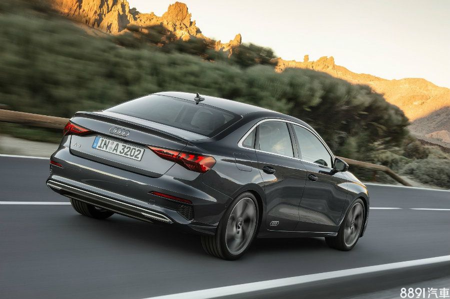 新一代A3 Sedan比照五門版,換上更具張力的LED頭燈組設計、加寬的水箱護罩、新式樣前後保桿,以及新款尾燈組等,演繹已於品牌新世代車型可見的帥氣、科技面容,車尾則運用更多的水平線條,突顯視覺寬廣度。
