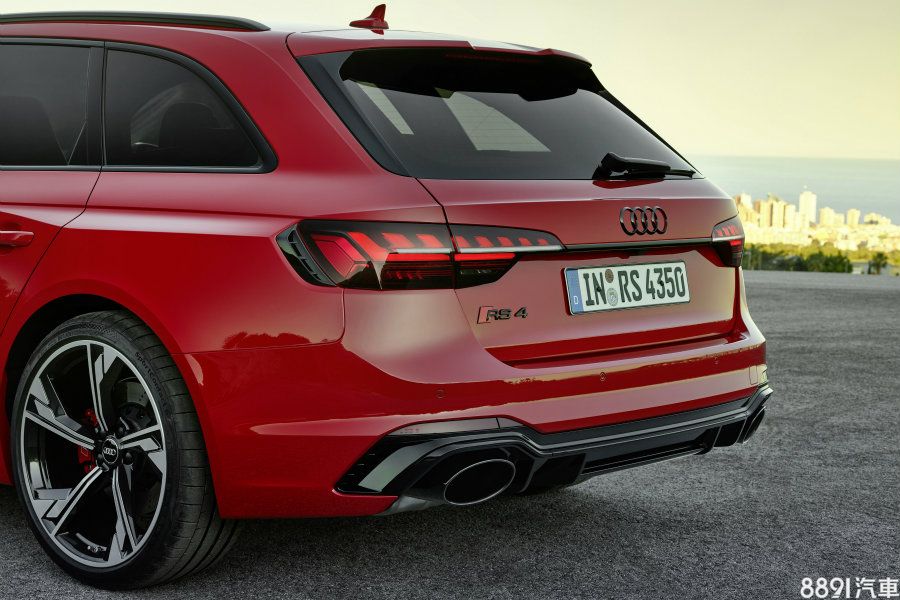 新RS4 Avant在外型上明顯延續了A4 Avant小改款的設計特徵,包含風格類似新一代A6、採用虛線造型的新式頭尾燈組,前臉也換上更加寬扁的Singleframe六角水箱罩,並於引擎蓋下增加效仿二代A1的進氣柵設計。