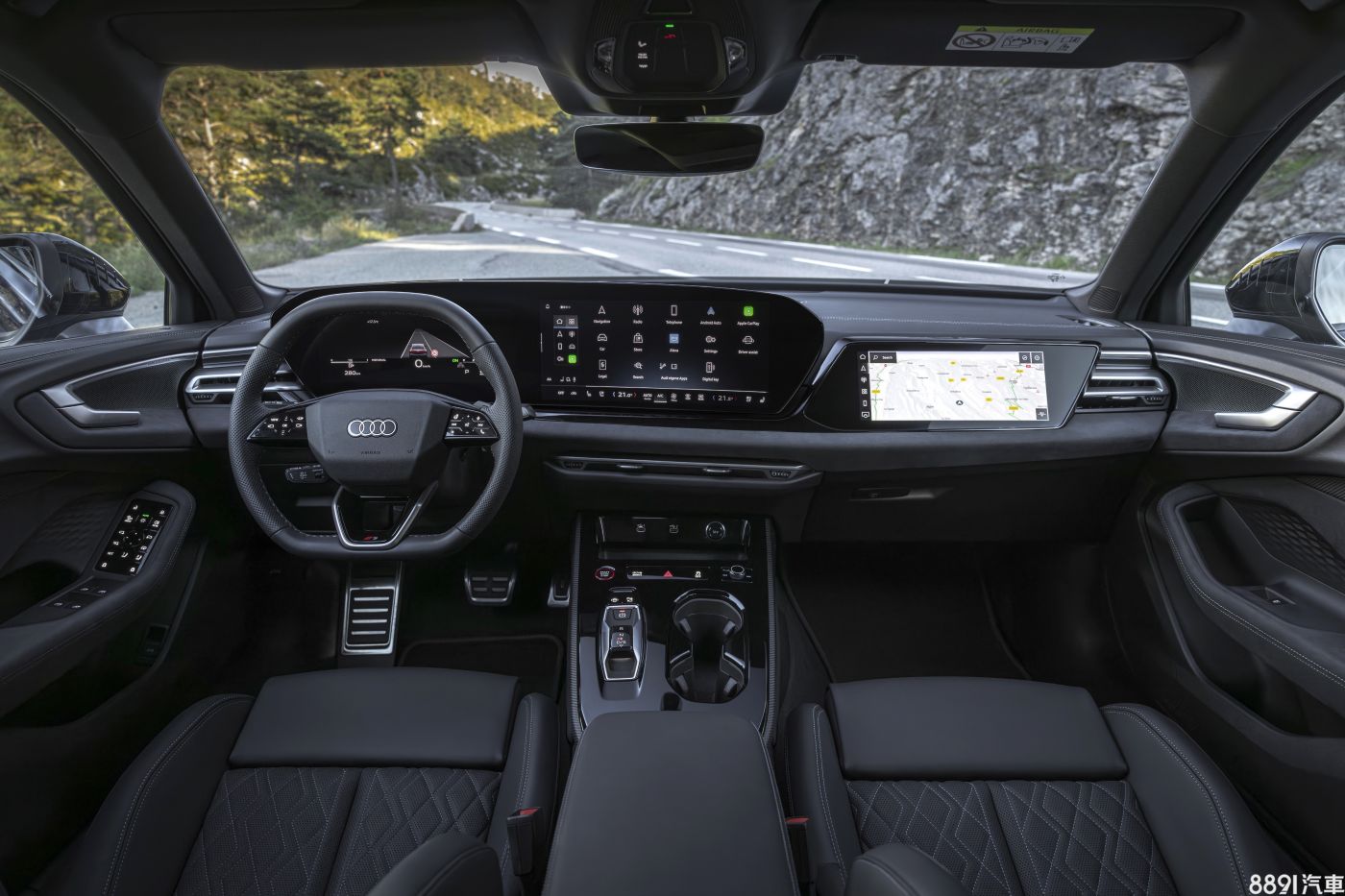 車室格局比照Q6 e-tron,以整合11.9吋數位儀錶、支援ChatGPT功能的14.5吋MMI多媒體系統的曲面螢幕、副駕駛座10.9吋觸控螢幕(選配)為焦點,也導入了投射面積更大、整合多項資訊的HUD抬頭顯示器。