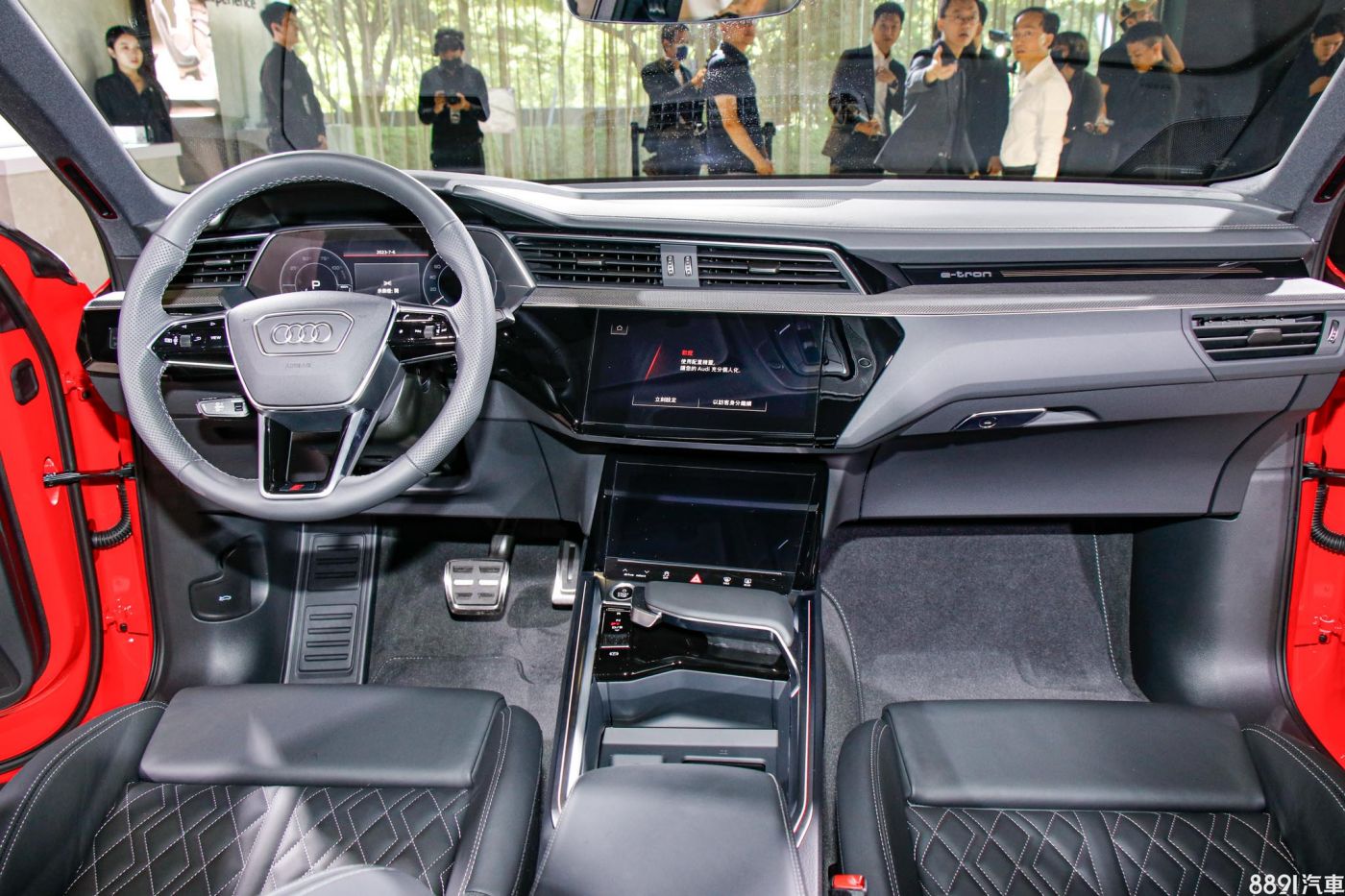 外觀上維持e-tron既有架構,主要針對車頭水箱罩做修改,除帶來新的蜂巢狀設計,內部還有會自動啟閉的格柵,並換上新的平面化四環廠徽,且在上方加入橫貫式LED燈條,整體面容變得更具層次且富科技感。