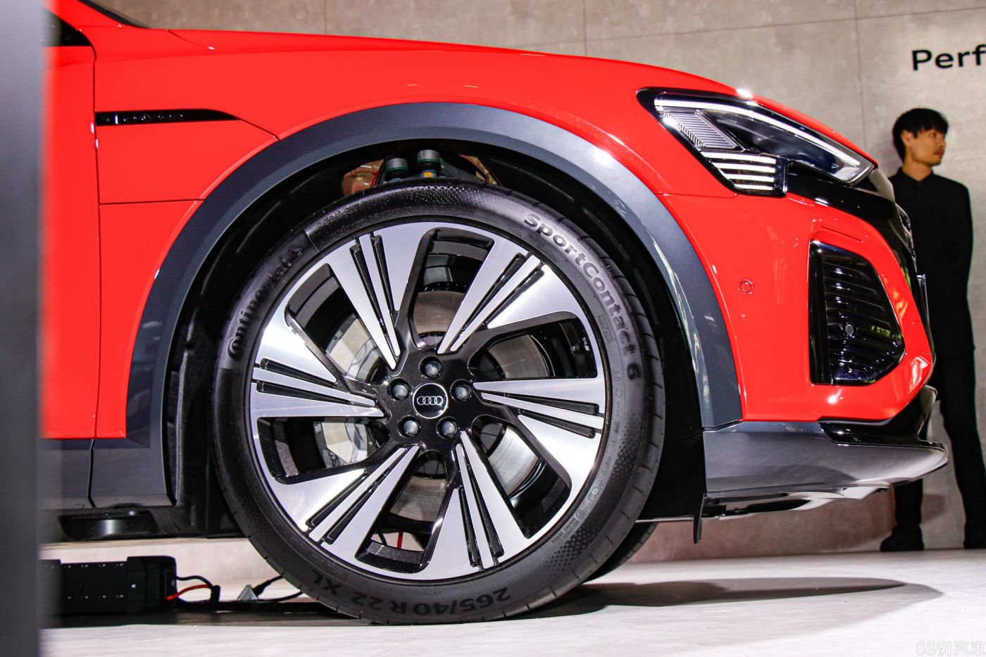 鋁圈標準版標配20吋、Sportback版為21吋,展示車選配22吋雙色鋁圈,配胎為265/40R22 XL的馬牌SportContact 6,是款頗具性能味的運動胎,後方的XL代表還有再針對休旅車的載重需求作加強。