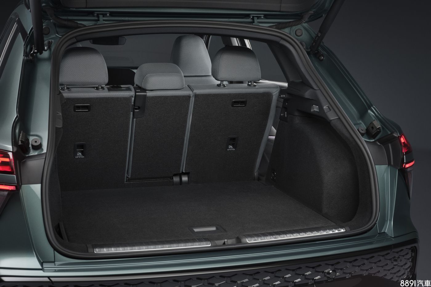 新Q3行李廂基礎容積488L,椅背挺直可提升至575L,若將後座4/2/4全數放倒後可進一步擴大至1386L。