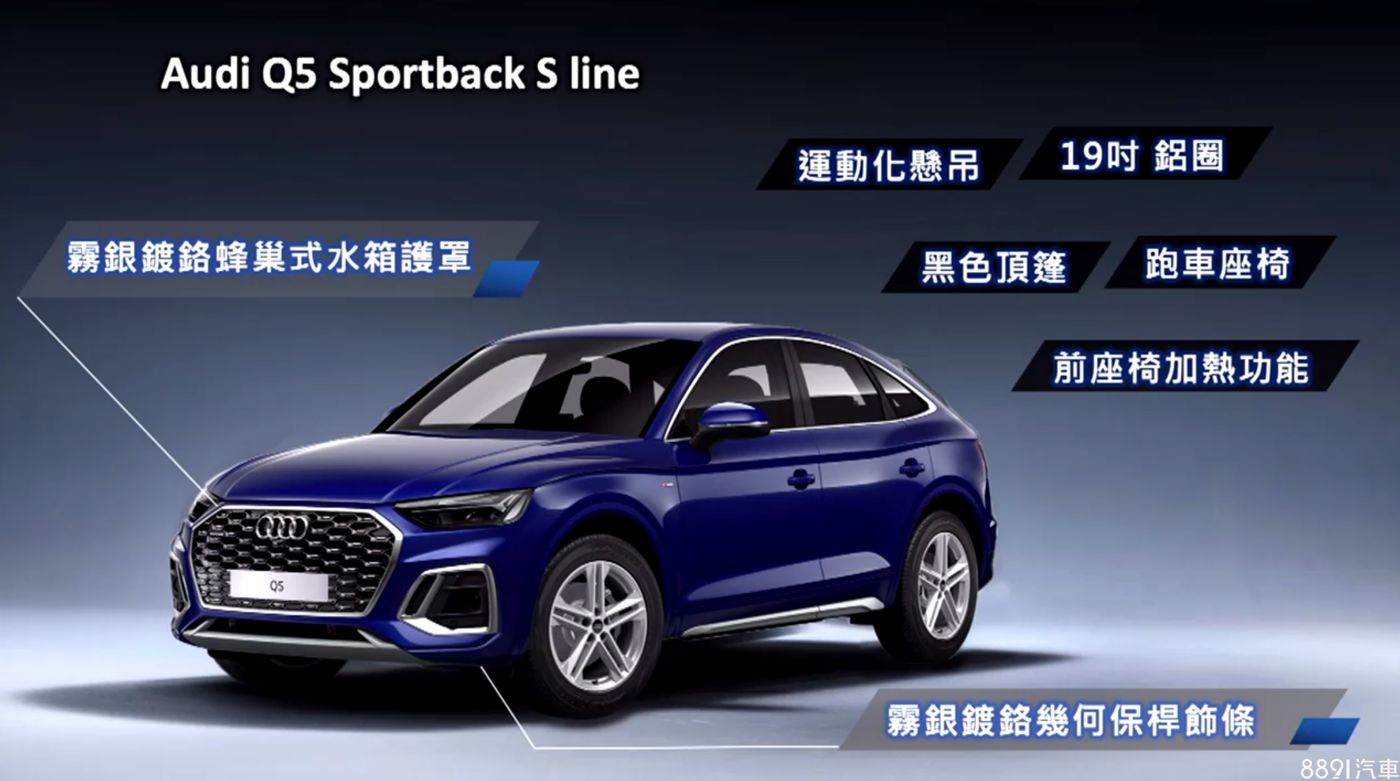 因疫情緣故,Audi Q5 Sportback記者會改為線上發表,全車系均為單一2.0升動力搭四驅設定,並分為advanced、S line、Edition One三車型編成,建議售價依序為283萬、296萬、299萬,其中S line為新增車型,其餘兩車型則較預售價調降2~3萬,官方預估Q5及Q5 Sportback銷售佔比約為6比4。