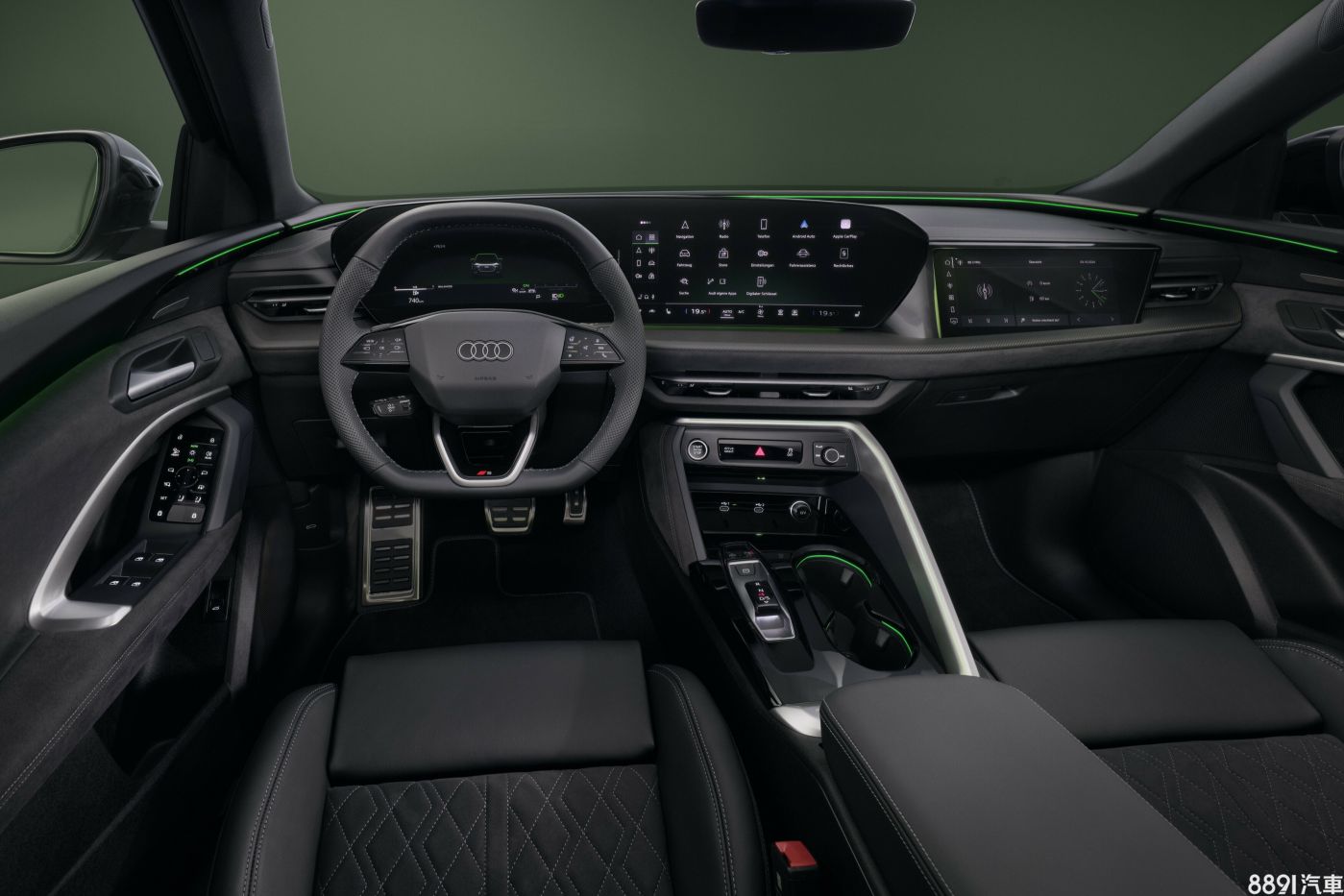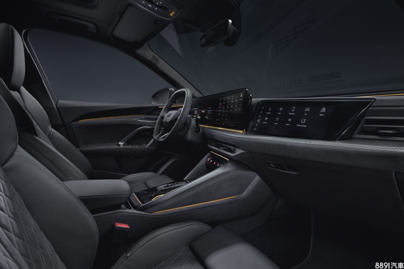 車內導入E³ 1.2電子架構為基礎的數位互動座艙,車內配備二大高解析OLED螢幕,包括11.9吋數位儀錶、14.5吋中央MMI觸控螢幕,及可選配的10.9吋副駕駛座專屬LCD觸控螢幕(SQ5標配),提供直覺操作與沉浸式視覺體驗。全車系內裝搭載運動化座椅、S式樣平把方向盤,搭配鋁質飾板與可變色環艙氣氛燈。
