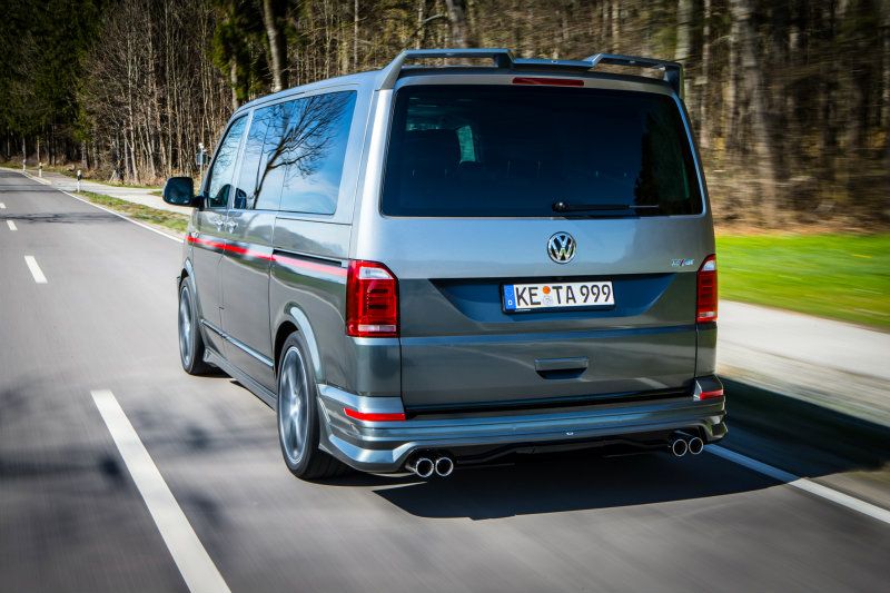 第三款周年紀念版為商旅車T6,動力規格選擇2.0 TDI版本,經過「ABT POWERed」加持讓扭力從原本的34.7 kgm晉級到42.8 kgm,馬力則從150hp提升至180hp。從外觀看,銥灰色、銀色和紅色為車體主要元素,並加裝全車空力套件,後保桿下方配置4出排氣管,讓這部T6不再呈現濃厚的商務氣息,而是渾身充滿性能化氣息。