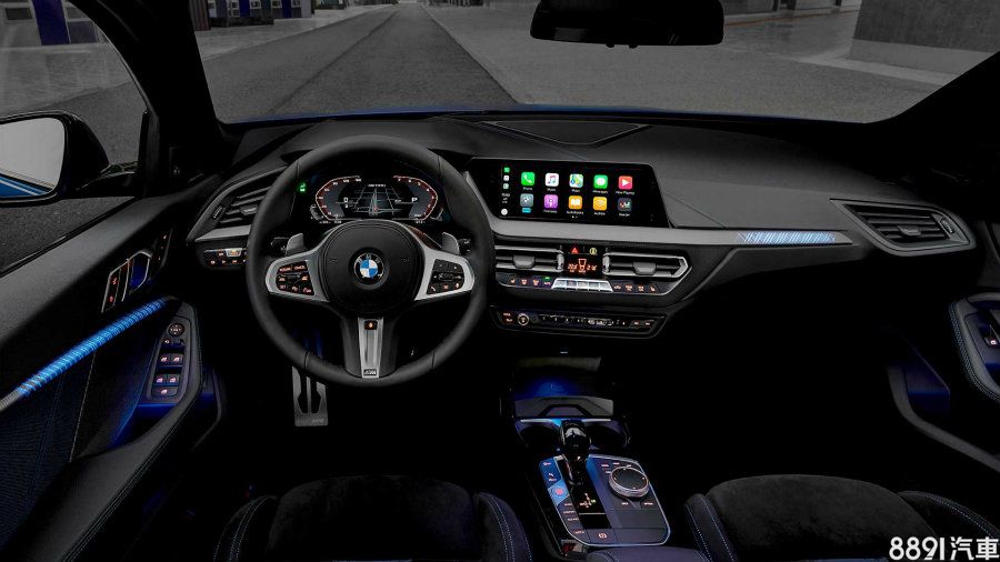 依車型不同,BMW也為新1系列內裝提供不同扮相,M135i除了加入rigon布料、Alcantara等材質,並以藍色車縫線妝點,呼應其身分,此外,M款方向盤、運動化座椅、金屬踏板、專屬飾板等配置都沒少,並標配氣氛燈,採內嵌於車側門飾板內的網狀設計,在副駕駛座前方飾板上亦可覓得,有點「邱」~
