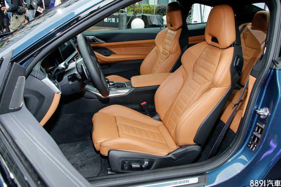 內裝部分420i M Sport與430i M Sport均配置雙前座跑車座椅,以皮革混搭Alcantara麂皮包覆,具備電動調整、腰靠及駕駛座記憶功能。現場展示的430i M Sport另選6.3萬的M款跑車座椅。