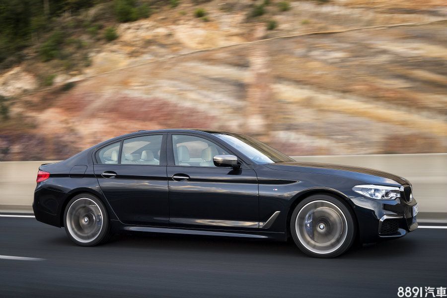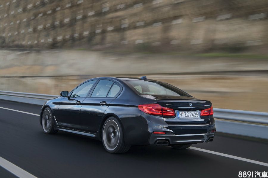 國內導入的M550i在外觀部分,專屬配置進階LED主動式轉向頭燈,附遠光燈輔助、頭燈高壓清洗功能,窗沿施以亮黑塗裝,雖與540i M Sport同樣搭載20吋鋁圈,但造型更加俐落動感。
