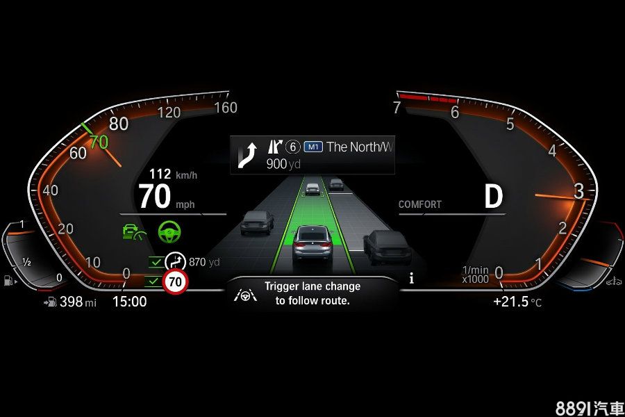 車室內維持現有格局,駕駛介面由12.3吋數位儀錶,與加大面積16%的HUD車況抬頭顯示器組成,中央多媒體系統配置12.3吋觸控螢幕,內建iDrive 7.0操作介面,並支援無線Apple Carplay/Android Auto、智慧語音助理2.0等功能。