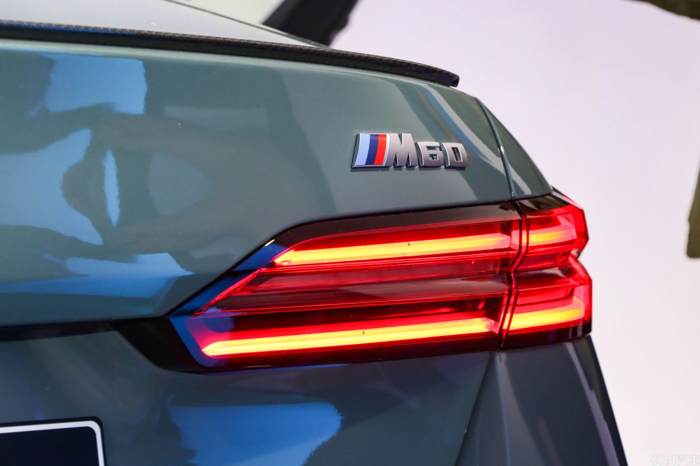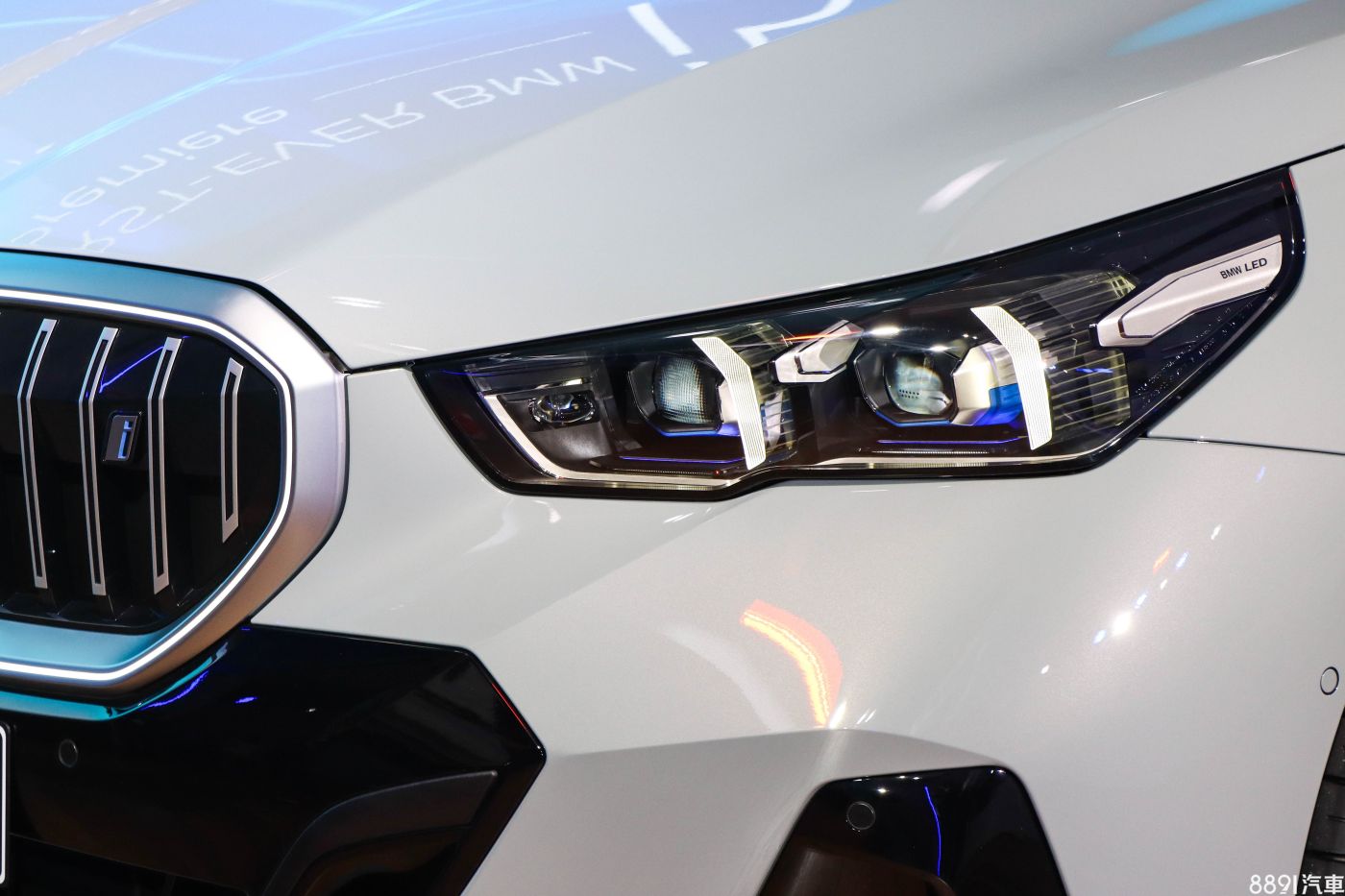 頂規i5 M60 xDrive,則有上有M徽飾的橫柵式仿水箱罩,前氣壩透過飾板妝點出更具侵略性的造型,展示車頭燈組還施以燻黑處理。
