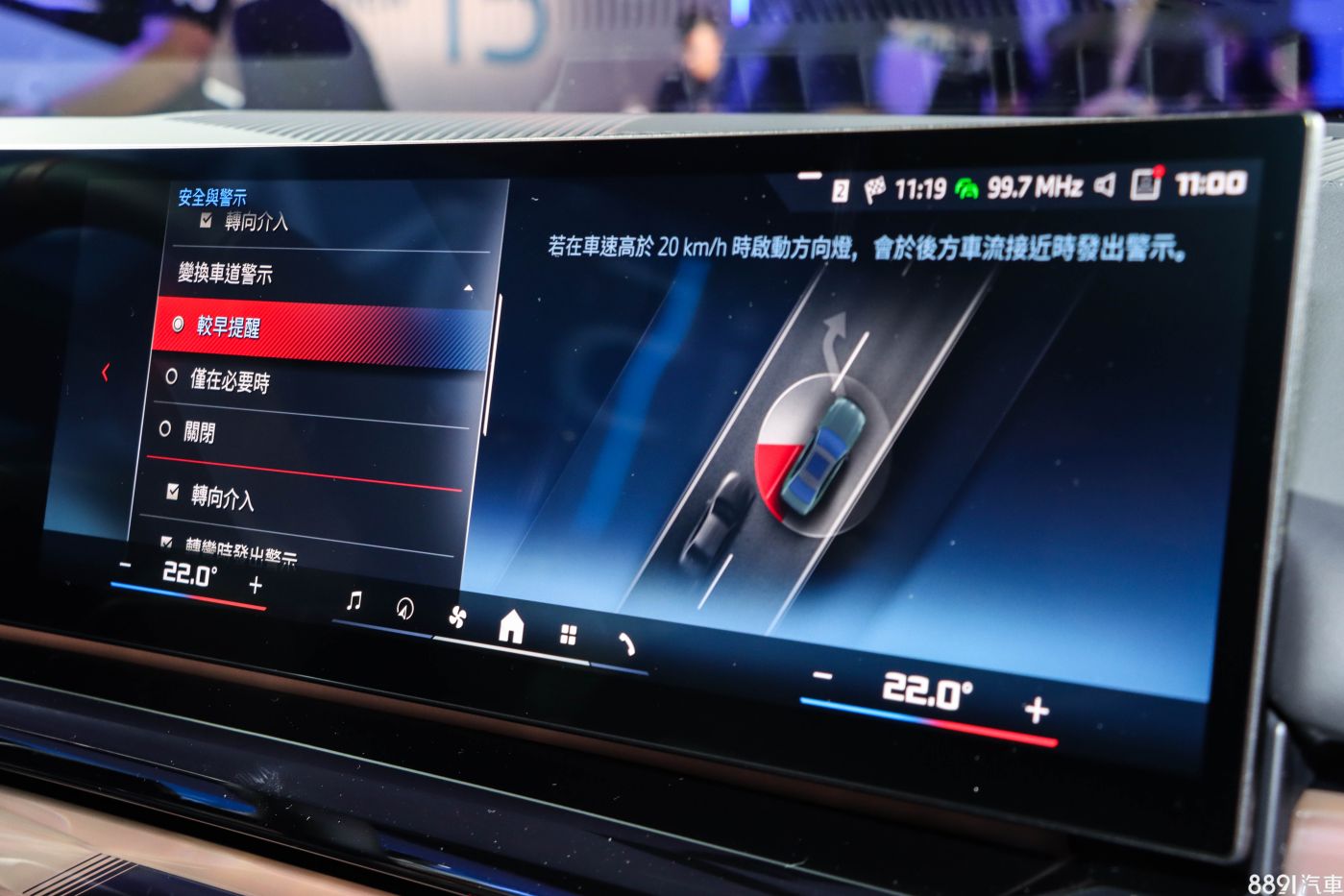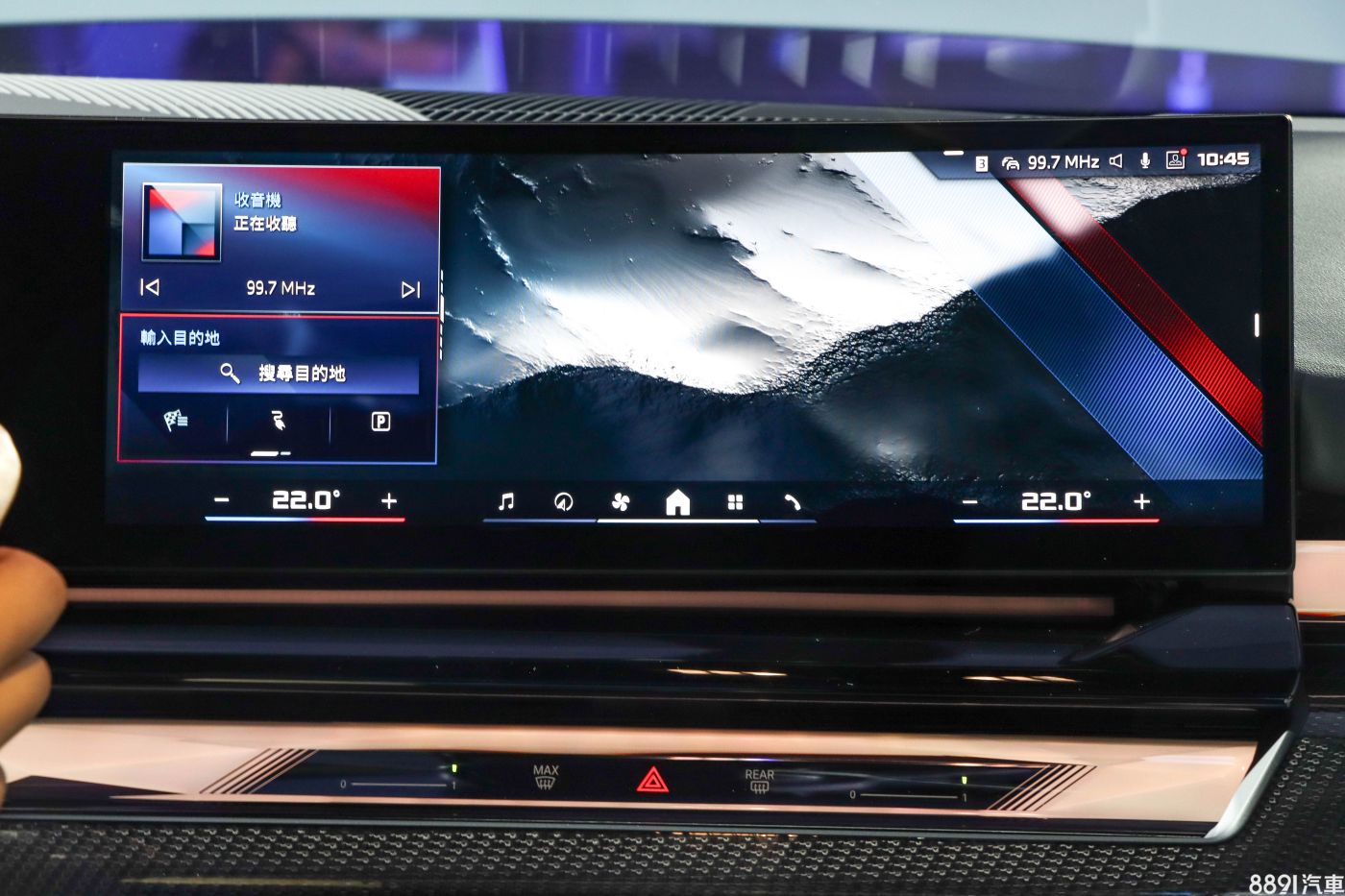 車室如同「大哥」7 Series,採用自iX起就有的極簡鋪陳,搭載兩具相連的寬幅懸浮曲面螢幕、多角形雙輻式方向盤,前排空調出風口則與採環艙設計、加入水晶元素與全車系標配的BMW環繞光幕整合,十足的科技與「儀式感」,其他標配項目還包含抬頭顯示器、B&W音響系統等。