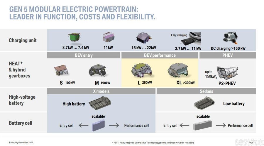 官方同時依據搭載技術為其規劃作世代劃分,並將純電X3後之車型歸納為第5世代。原廠預期將自第五世代起採用全新模組化動力系統,並可針對車型及動力配置搭配所需之充電介面、傳動機組及電池性能。
