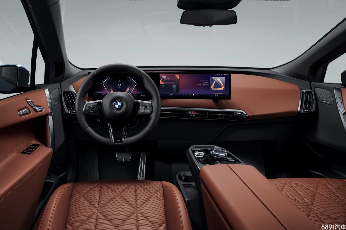 座艙維持12.3吋數位儀錶+14.9吋觸控多媒體的「雙螢幕」布局,結合車內多處鑲嵌的水晶套件,進一步襯托細膩品味。iX xDrive45 Excellence採用天然木紋飾板與銅色飾條妝點,iX xDrive45 M Sport與iX xDrive60 M Sport兩版本皆採用M Sport內裝套件,包含M多功能真皮跑車方向盤,搭配霧面深灰飾條與黑色高光澤飾板結合菱格紋點綴。