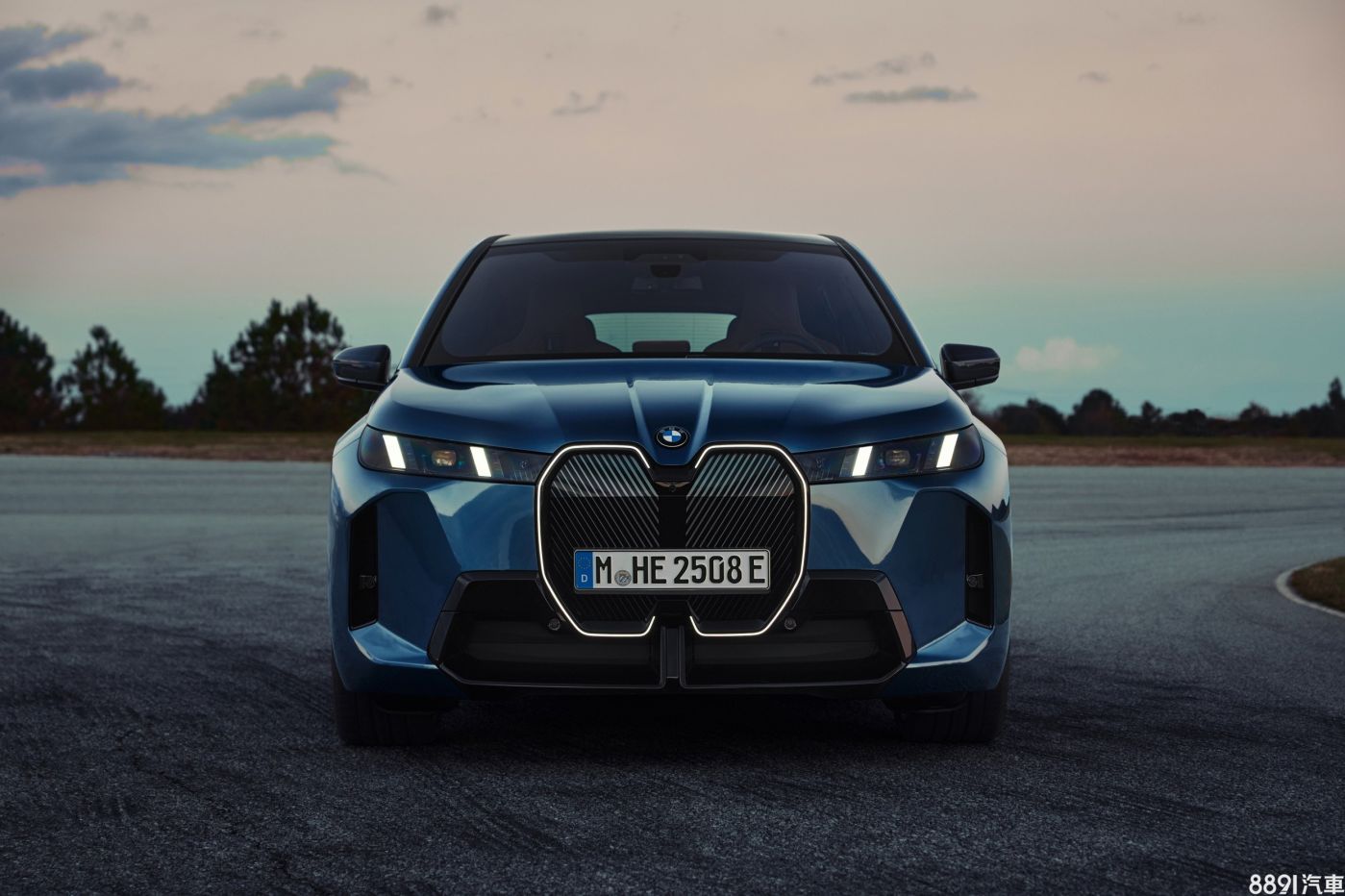 小改款BMW iX僅小針美容,採用新設計的封閉式雙腎型水箱護罩,融入斜紋與飾光造型,搭配頭燈內部四眼式直列燈條,呈現出更科技感的視覺印象。