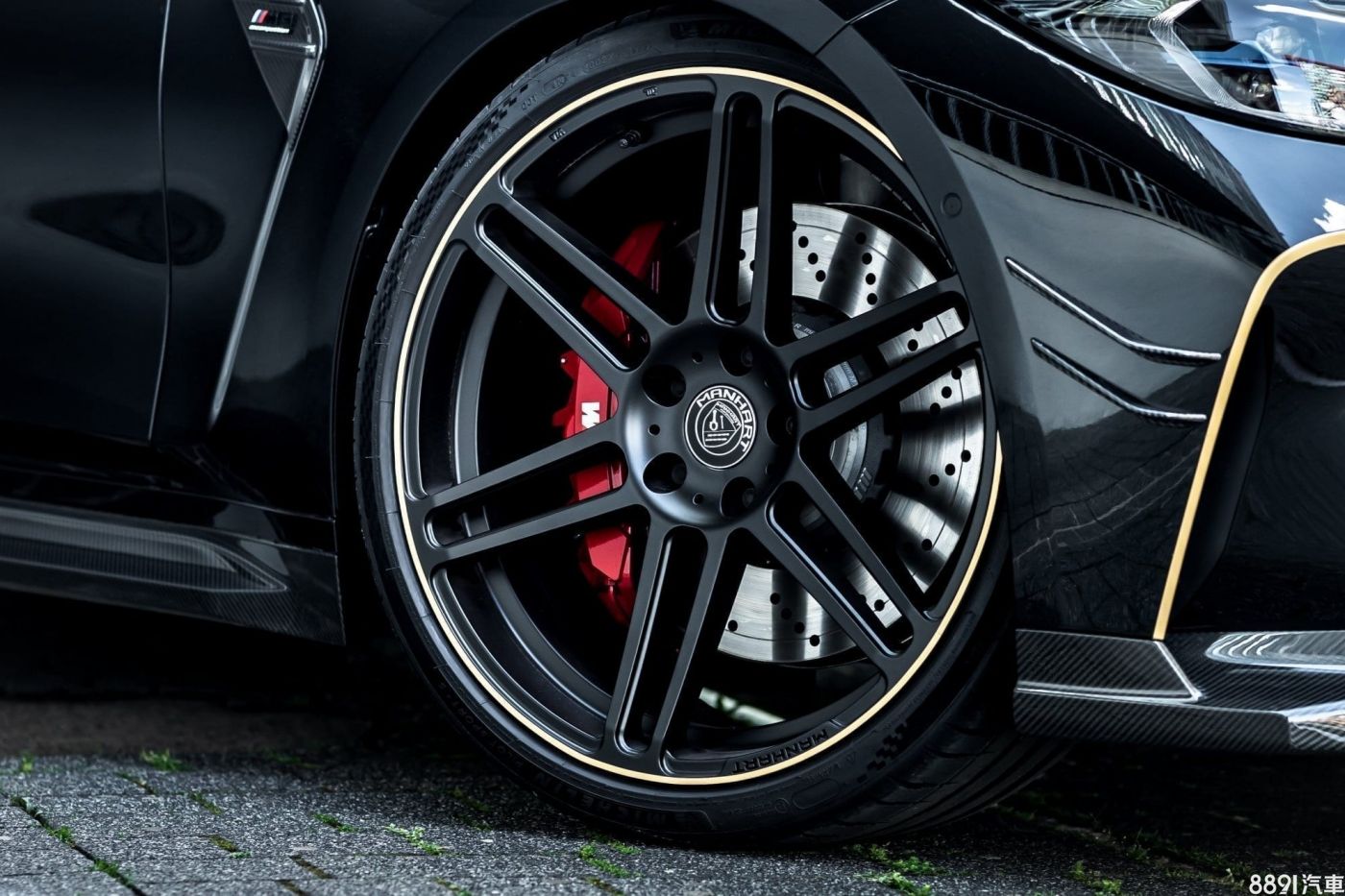 外觀方面沒有大刀闊斧的更動,主要採用Manhart標誌性的黑/金配色,懸吊部分換上H&R彈簧,前軸降低30mm,後軸則降低10mm,也能另外選擇KW打造的Manhart Variant 4避震組。