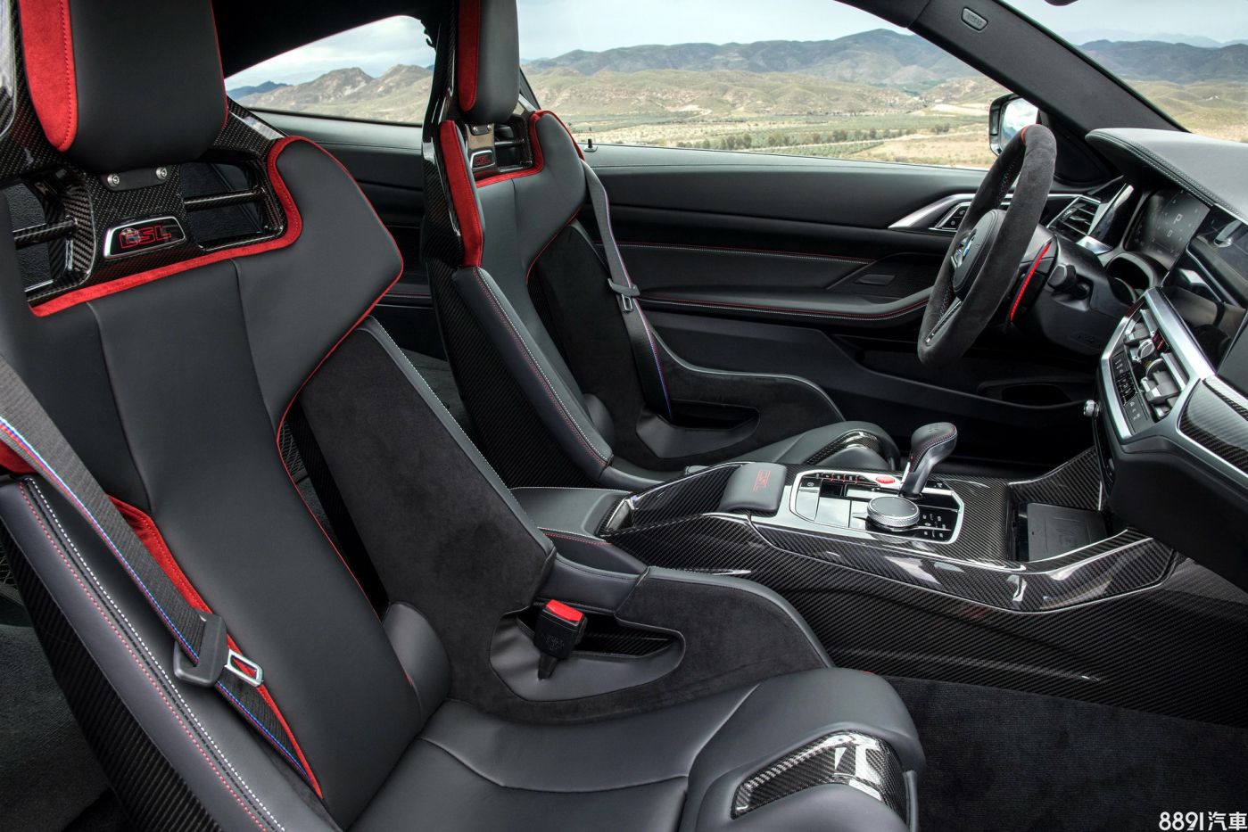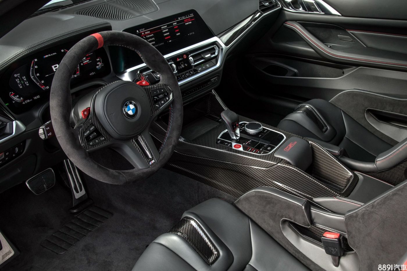 不僅是視覺上的變化,引擎蓋、尾廂蓋、車頂鈑件等處皆採碳纖維材質,座艙拆除後座,換上碳纖維中船和賽車椅,並配備輕量化鍛造鋁圈和鈦合金尾管,再加上重輛更輕的懸吊結構、水箱罩、尾燈、地墊、空調系統和隔音材質等,官方宣稱M4 CSL成功甩重100kg。