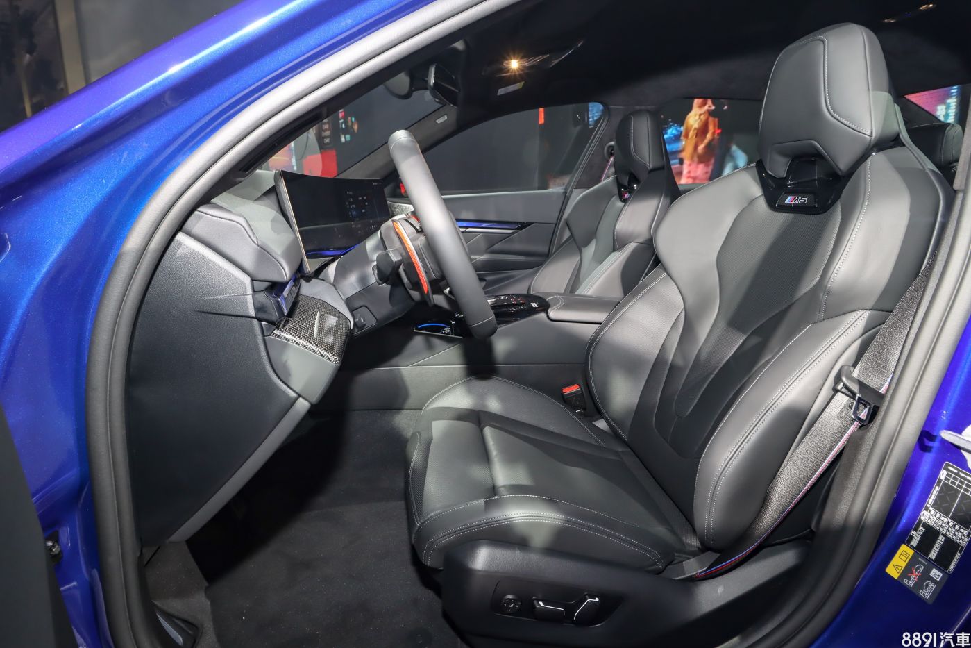 座椅採Merino真皮包覆,跑車化的椅型設計,不論腰部或腿部支撐都相當到位、紮實,雙前座均可電動調整,並具備通風加熱和記憶功能,且不僅椅背上有M5標誌凸顯身分,安全帶也具備M特色條紋造型。