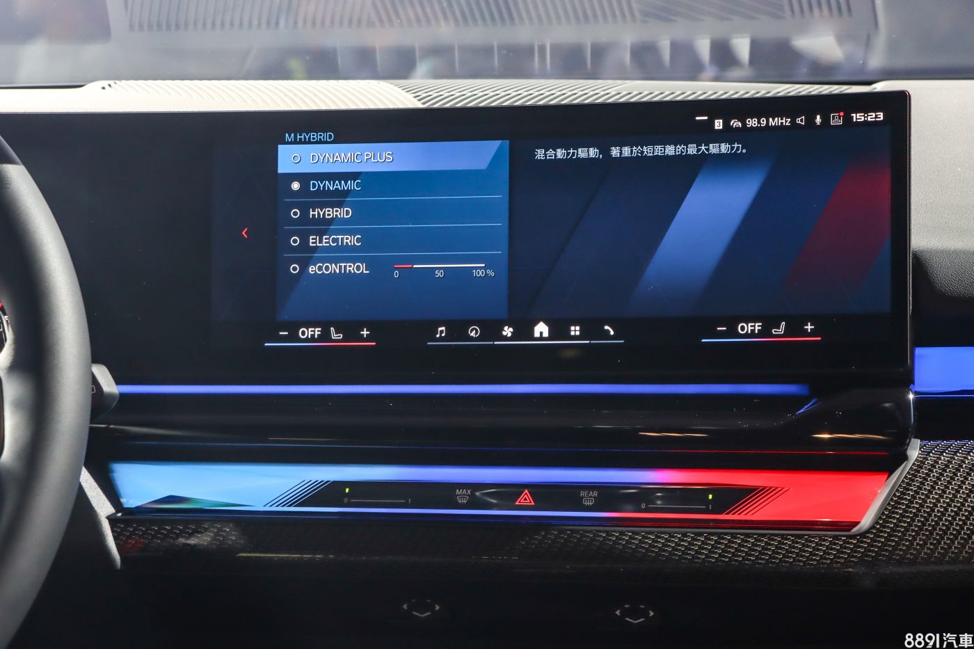 配合油電動力配置,新M5配備「M Hybrid」模式切換功能,可以調整多種油電行駛模式,在電量允許時,甚至可以強制純電驅動。