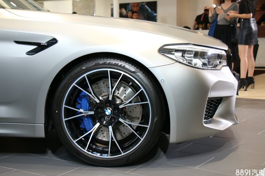 標準配胎較標準款升級1吋,M5 Competition有著前275/35R20、後285/35R20的前後輪尺碼,包覆著Y型七輻式20吋新款鋁圈。M款陶瓷碳纖維剎車則需以63.7萬的價格選配。
