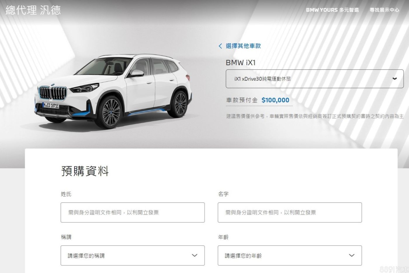 雖說目前尚未公布iX1的預售價格,但有興趣的消費者可先透過官網預購頁,線上預付新台幣10萬元,並填寫預購資料後,提前卡位。不過官方提醒,透過線上網站預購車輛並非正式買賣契約,僅作為安排生產配額的排序,後續經銷商會在與車主確認額外選配與其他資訊。