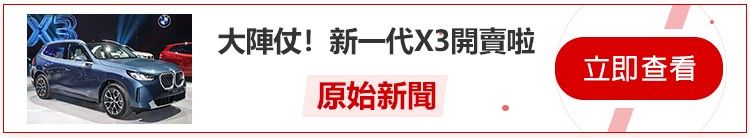 BMW大改款X3國內提供20 xDrive xLine、20 xDrive M Sport、M50 xDrive三車型,正式售價分別為249、277和383萬元。入門20車型配置2.0升四缸渦輪,並將可變LED頭燈、發光飾罩、12.3吋數位儀錶、14.9吋觸控多媒體、擴增實境導航、抬頭顯示器列標配;而性能頂規M50搭載3.0升直六渦輪,具備電子懸吊、可變式轉向系統等操控利器。