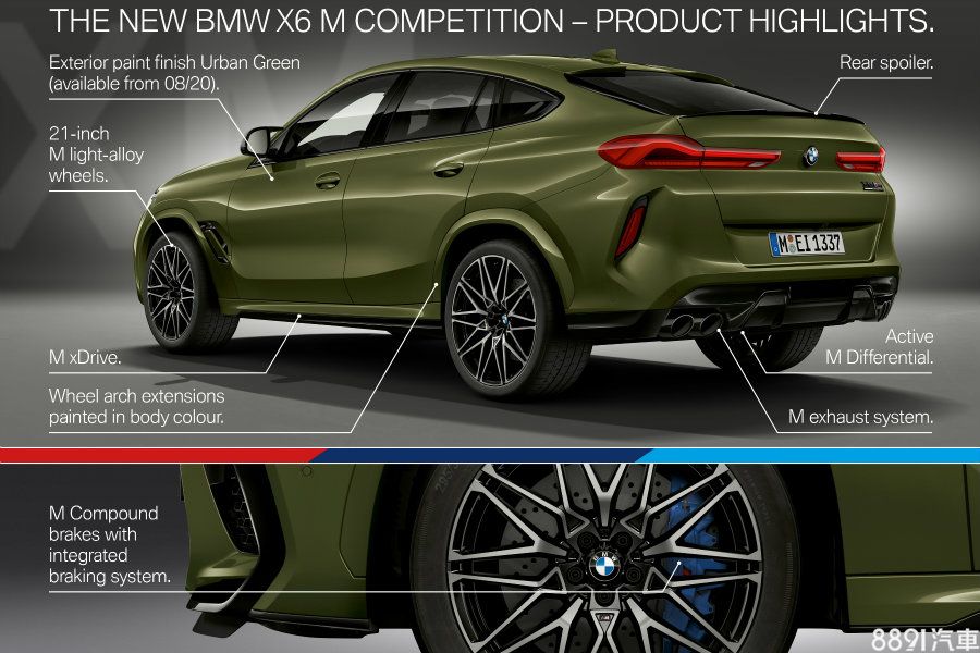 X5 M/X6 M Competition標配21吋M款輕量化鋁圈(另可選22吋式樣),以及前395mm、後380mm的加大碟盤、招牌藍色M款煞車卡鉗。
