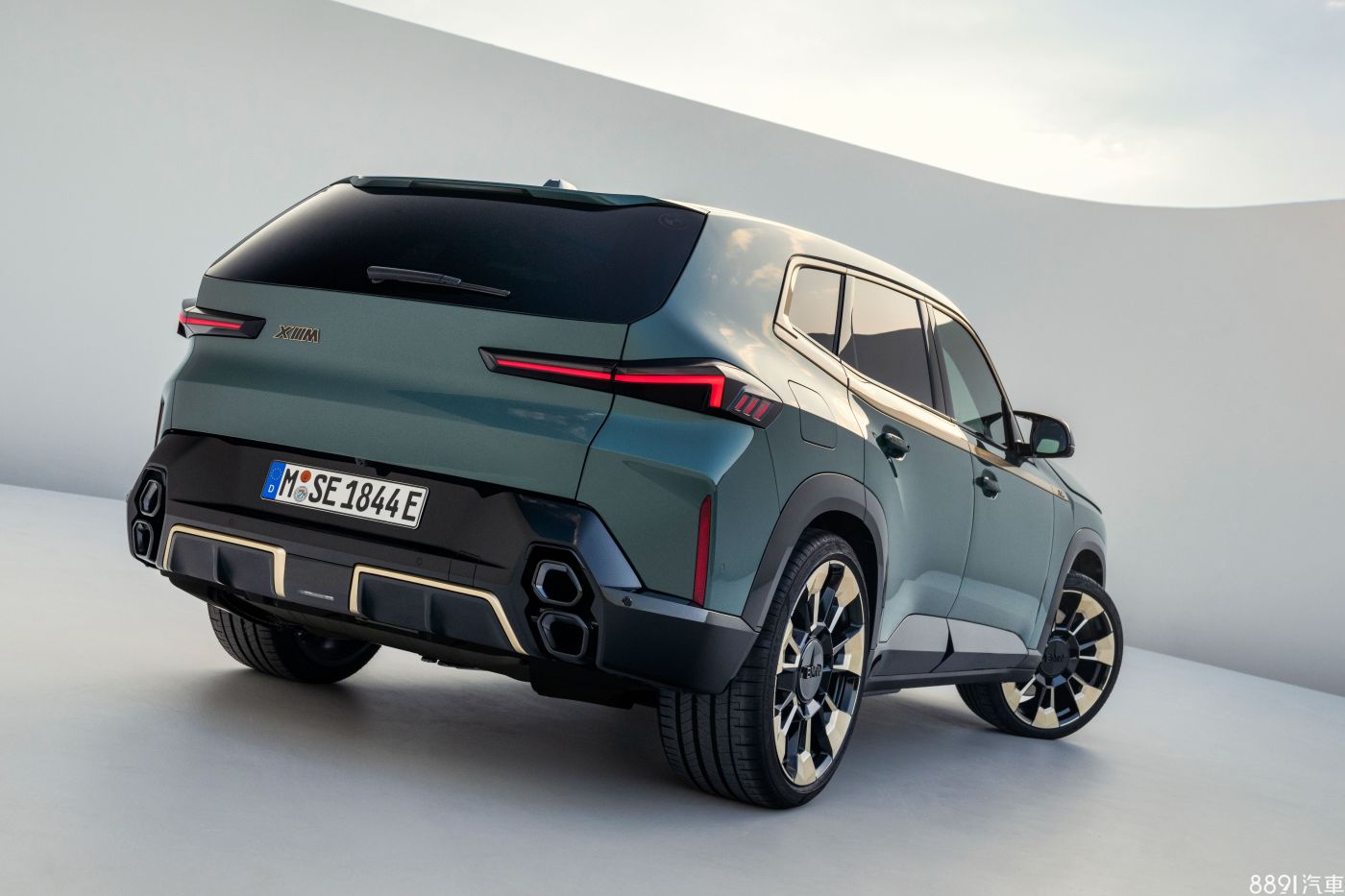 車尾造型相對保守些,線條趨於簡潔,原本概念車上的立體光條尾燈被換成接近X4和X6的風格,同時也可見門把換成較傳統的設計,廣泛用於M車款的左右雙出四尾管仍獲保留,不過垂直排列和六角尾管等特色,都為XM更添辨識性。