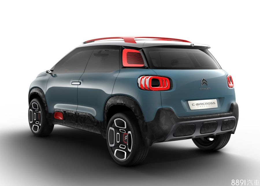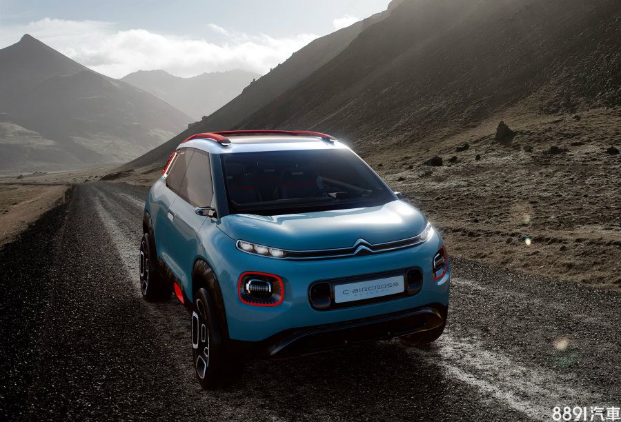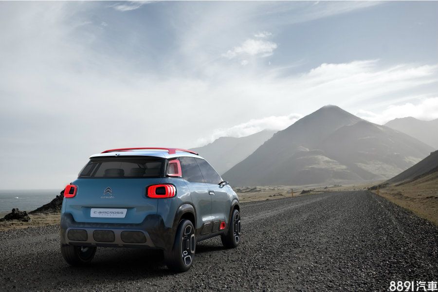 C-Aircross Concept車身尺寸為4150x1740x1630mm,與同集團的Peugeot 2008十分相近,外觀與新一代C3相似度頗高,同樣採分離式頭燈組,水箱護罩上的品牌鍍鉻飾條延伸至兩側的日行燈,全車為雙色塗裝,並採懸浮式車頂設計,但其仍擁有獨特的細節,如車身下部的大面積防刮材質,施以幾何圖形花紋妝點,予人前衛活潑的整體形象之餘,消光黑的前後護板則增添些許粗曠氣息。