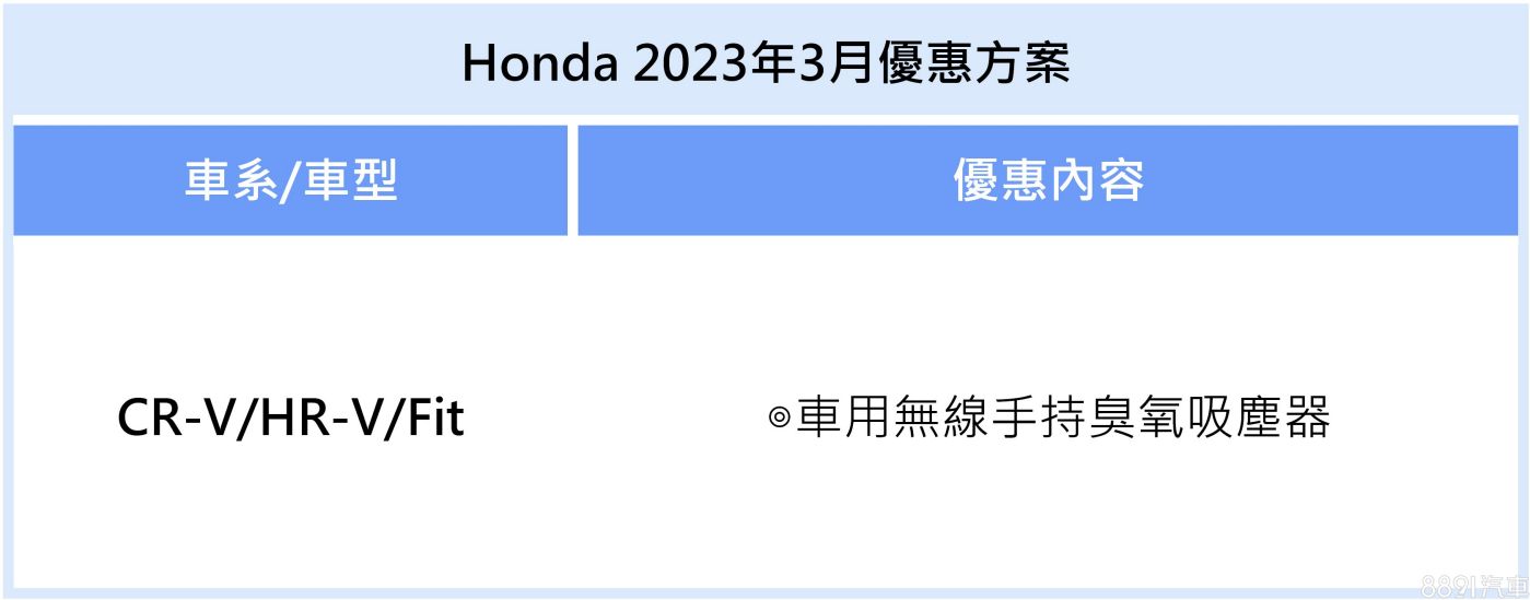台灣本田本月針對CR-V、HR-V及Fit推出促銷方案,入主即送無線手持臭氧吸塵器。