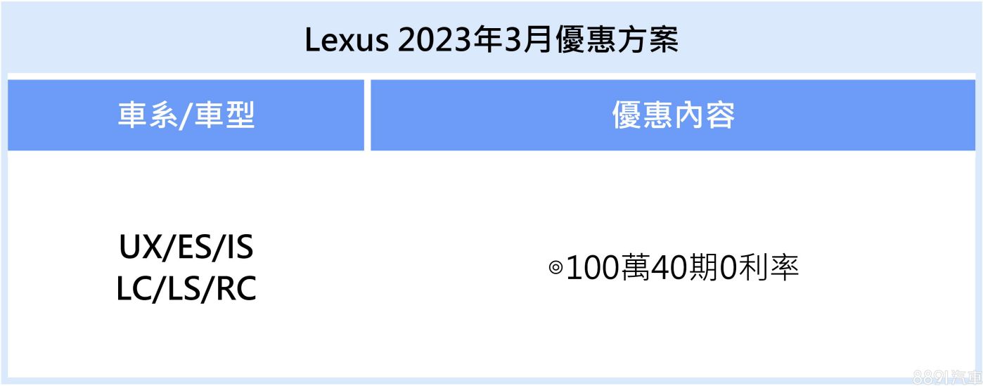 除了NX、RX與LM車系外,Lexus本月持續針對全車系推出優惠,提供100萬40期0利率分期專案。