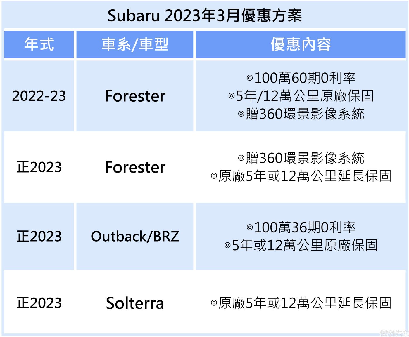 速霸陸本月除XV外,全車系皆有推出各式分期或延長保固等優惠,入主Forester再贈360環景影像系統。