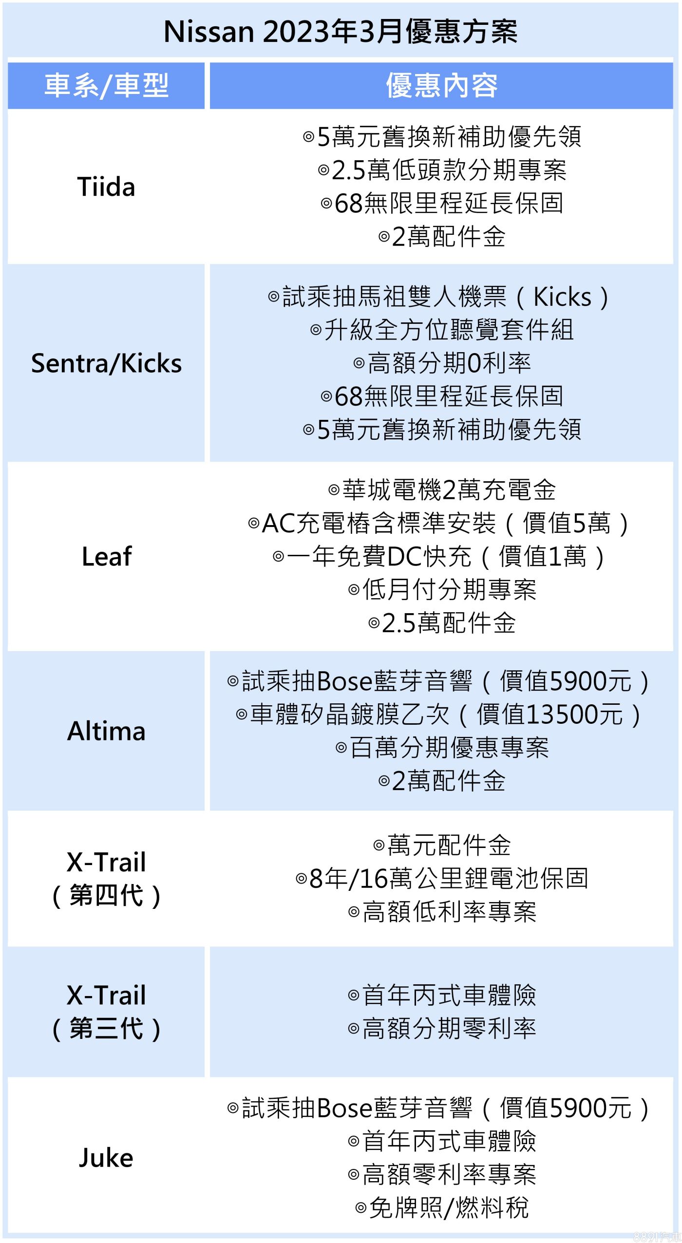 裕隆日產本月試乘指定車系就抽藍芽音響或馬祖雙人機票,並持續針對Sentra、Kicks推出優惠專案,月底前入主即可免費升級包含JBL聲動揚聲器及NSE車艙寧靜工程的「全方位聽覺套件組」,其餘車系也有丙式車體險、免牌照/燃料稅等優惠。