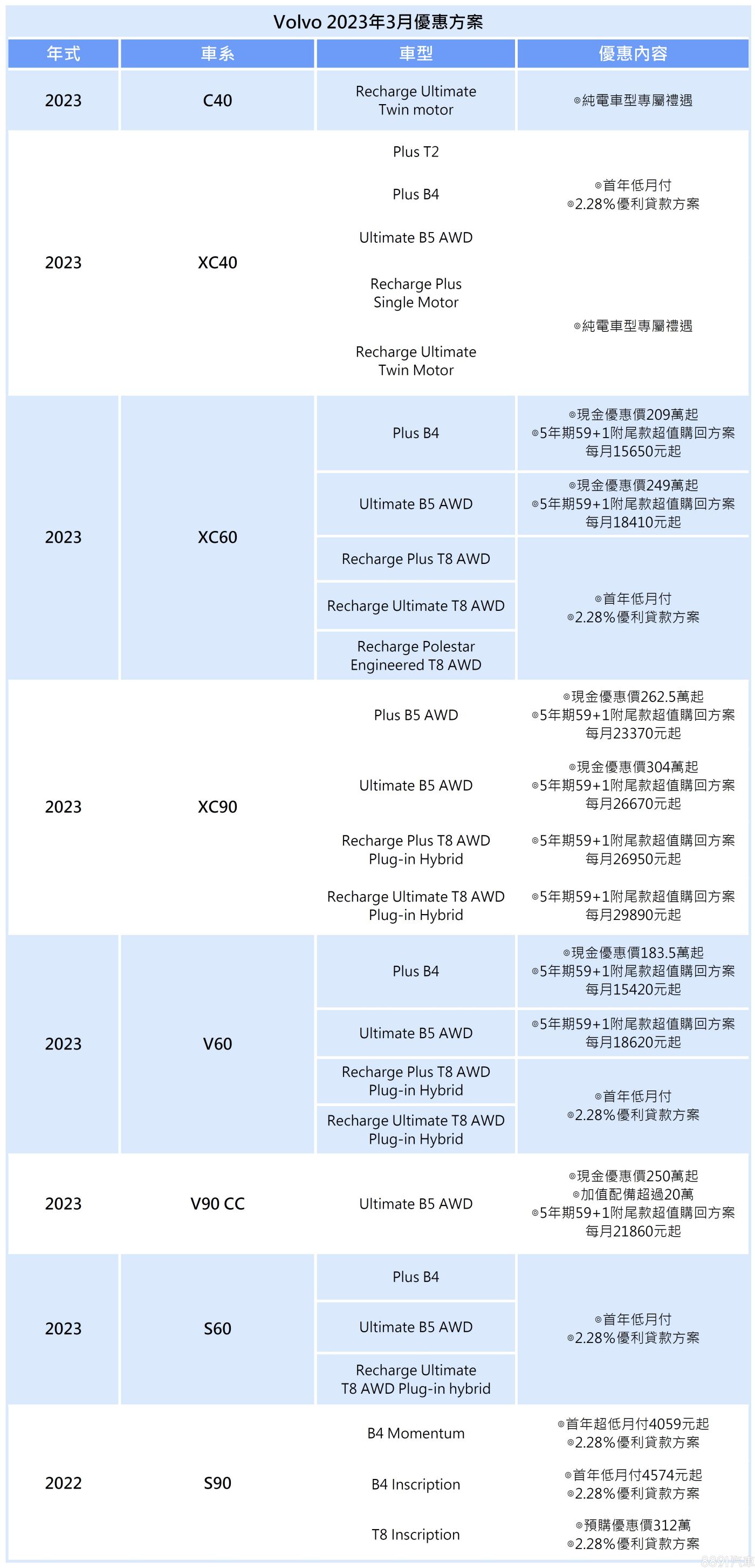 Volvo本月持續針對眾多車系推出專屬優惠,可享低頭款、超值購回方案或預購優惠價等,純電車型另享有專屬禮遇。