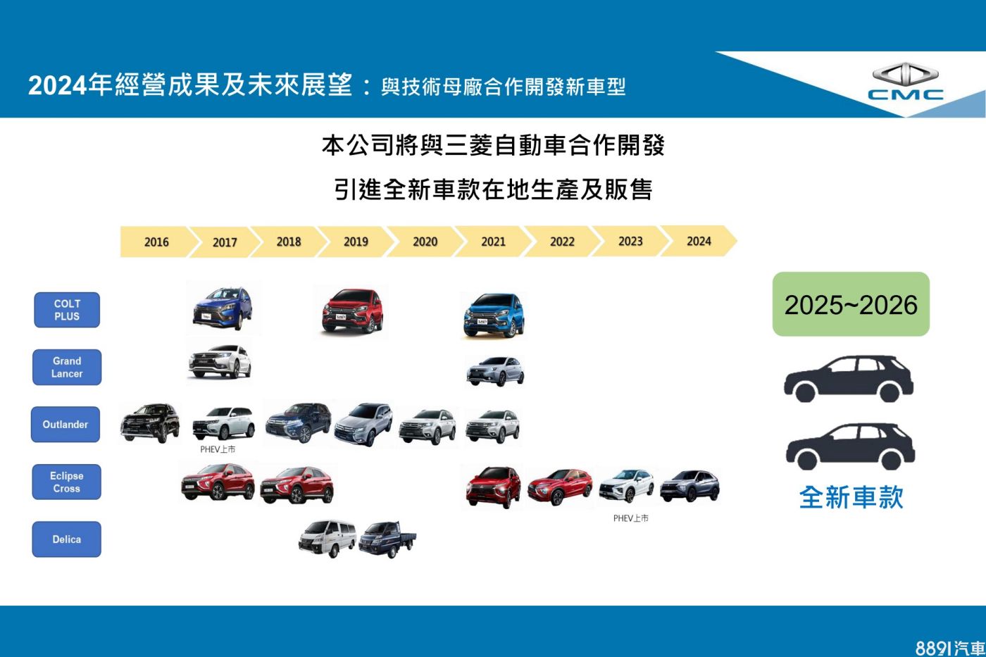而在乘用車市場方面,中華汽車也宣布將繼續與三菱的合作關係,並預告將有兩款新車會在2026年以前陸續來台報到,雖然新車確切身分尚待揭露,但從預告圖示看來,應該都屬休旅車款,且透露至少一款將國產化在台組裝販售。