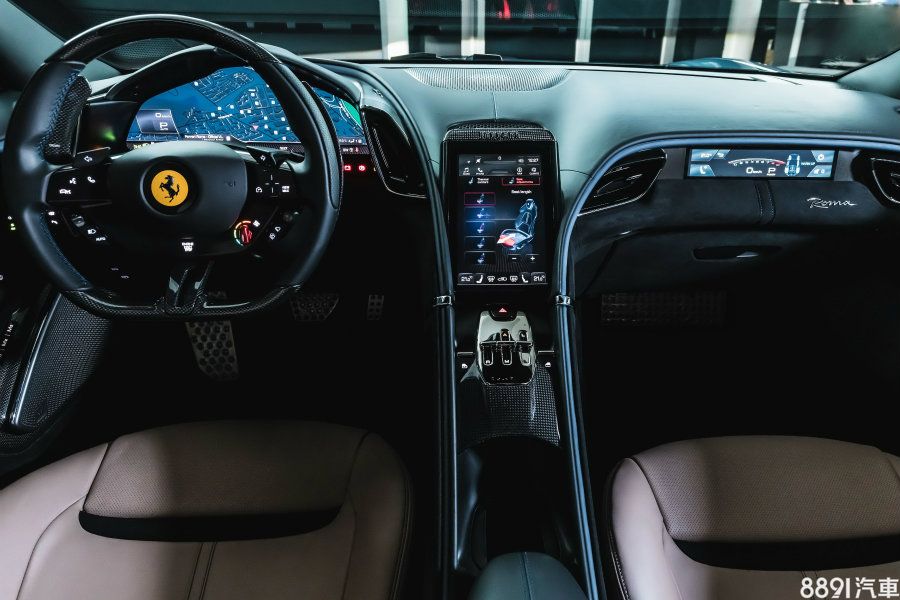 車室基於其他躍馬車型所採用過的「雙座艙」風格進行升級,和其他以駕駛者為中心的躍馬跑車不同,Roma的座艙結構幾乎完全對稱,環繞式座艙的概念,由儀錶一路延伸至後排座椅。中控台則集成了源自F1的控制按鈕,格柵式排檔設計更令人聯想到經典造型的躍馬傳統排檔桿。