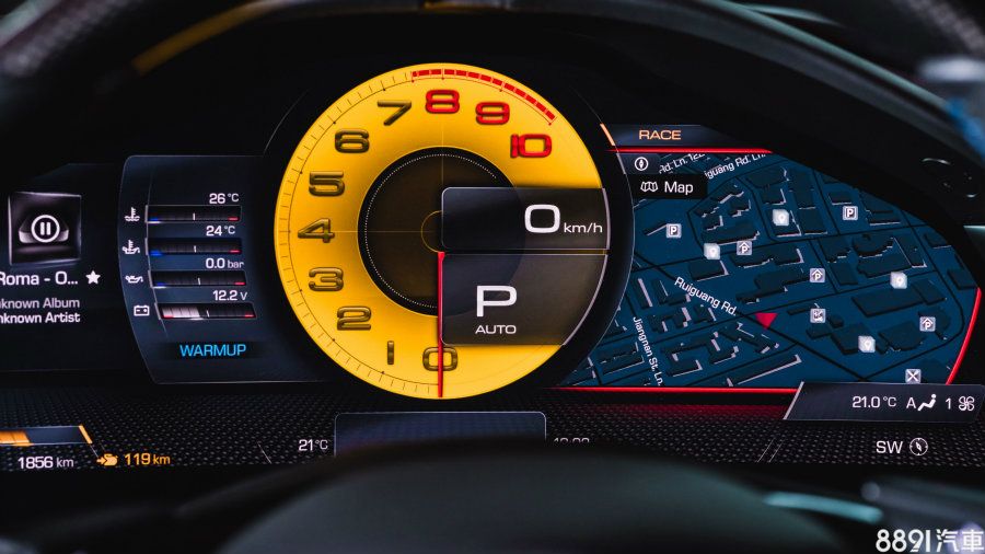 8.4吋中央顯示幕設於兩個座艙之間,整合資訊、娛樂、衛星導航及溫度控制等功能,加上可提供性能資料與車輛狀態、選擇歌曲、流覽衛星導航、控制空調等設定、置於副駕駛座的8.8吋觸控式螢幕,科技感十足。