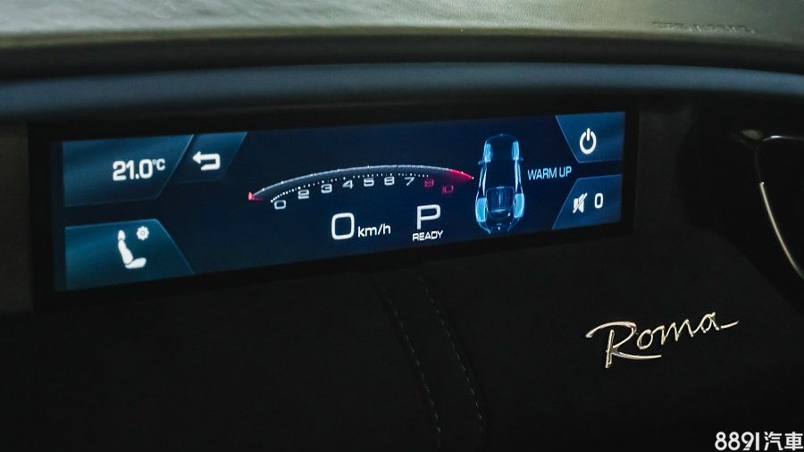以全新模組化底盤打造的Roma,搭載的是3.9升V8雙渦輪汽油引擎,可產生620hp/77.5kgm之最大輸出,搭配同樣向SF90 Stradale借來的8速雙離合器自手排變速箱,只需3.4秒就能完成0~100km/h,極速達320 km/h。
