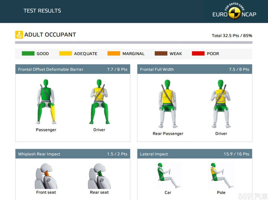 根據Euro NCAP(歐盟新車安全評鑑協會)最新撞擊測試報告指出,成人防護表現小幅下降,從92%下跌至85%,車身防護則維持相同水準,乍看下似乎防撞安全性表現較差,但若再細看其它數據,兒童防護表現明顯提升,加上新一代Focus導入Co-Pilot360安全科技,在安全輔助部份表現更為優異,也因為如此,經過綜合評估後,新一代Foucs仍拿下五星評級。