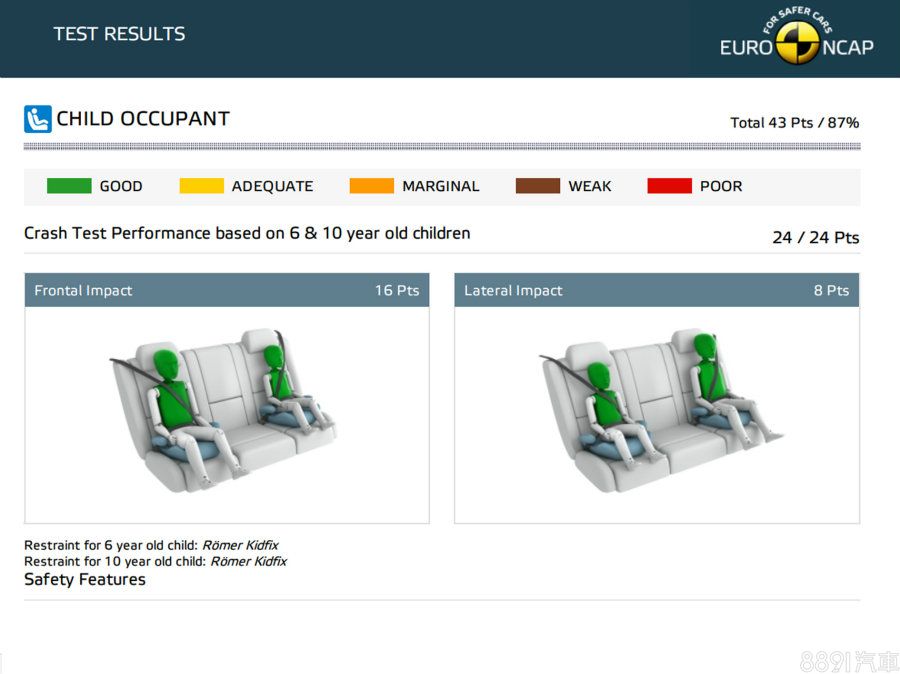 而在兒童防護部分,由於新一代Focus後座兩側均配有ISO-FIX兒童安全座椅固定裝置,且加裝後其安全性均符合國際法規標準,可完善保護6~10歲兒童的乘坐安全,因此評價獲得最高「Good」級別。