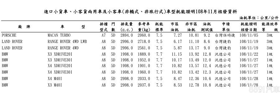 其他如雙B眾多性能車款、預售價461萬的小改款Macan Turbo等,亦現身11月油耗測試數據中。