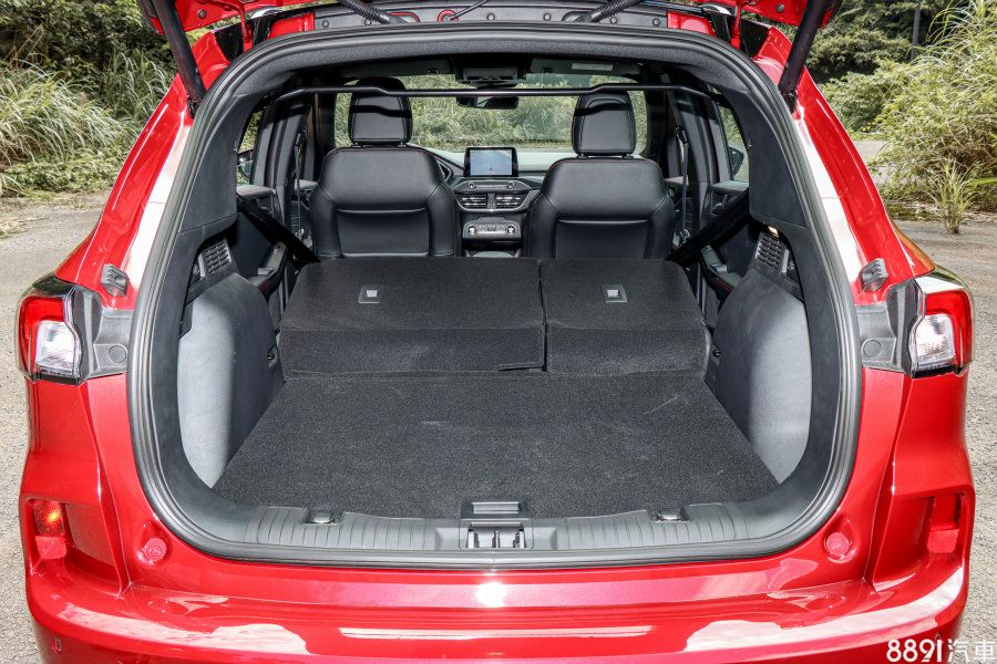 因為軸距的拉長,原廠表示新Kuga後座空間較舊款略為加大,同時後座支援前後滑移可靈活調整,不過因為採客貨車認證,行李箱依法規要求需達一立方公尺,因此限縮了滑移距離(從原本15cm降至5cm),椅背角度仍然偏直。
