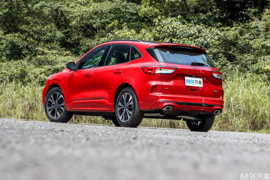 車尾部分全車系標配LED光條式尾燈,並統一貼有Kuga金屬字標,一般車型為單邊圓形尾飾管;ST-Line版本則改為雙邊單出方形尾管,並獨享黑色擾流尾翼。