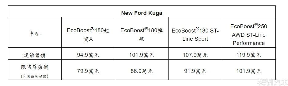 針對Kuga,Ford推出指定車型降價優惠,EcoBoost 180三車型舊換新79.9萬起,EcoBoost 250 AWD ST-Line Performance舊換新專案價更只要101.9萬,試駕還送「 LFP 香料香水實驗室」聯名香水。