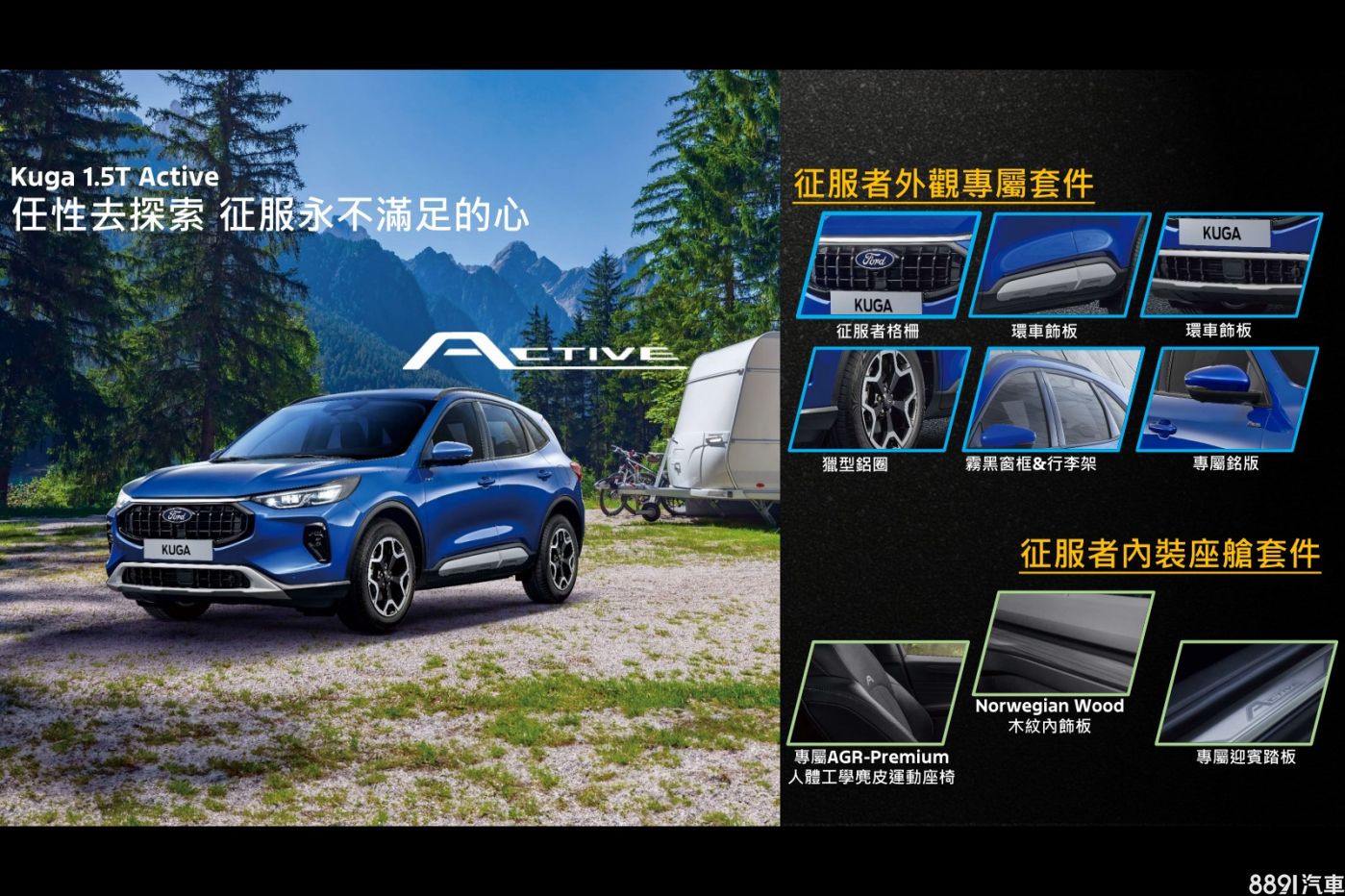 不用等10/2台灣上市,Ford Kuga更新亮點搶先一覽!首先在車型編成上,原本定位2.0升頂規的Vignale車型,於小改款後改作1.5升的車型選擇;車系並另外新增Active跨界風車型,同樣列為1.5升動力的造型選項。