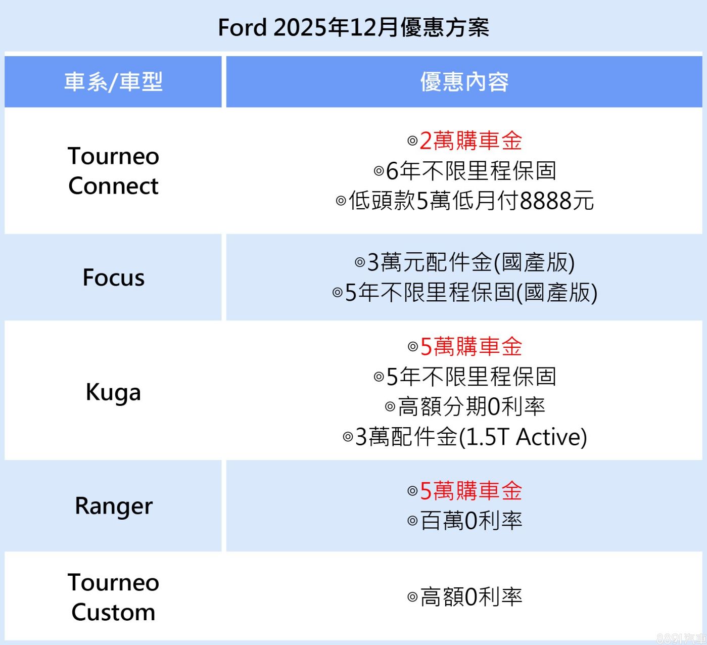 歲末壓軸登場!福特六和加碼推出多款熱門車型的限時優惠方案!自2025年12月1日起至12月31日止,響應政府減稅政策,活動期間入主Kuga 1.5T動力車型,享力挺價83.9萬起(含舊換新、5萬元力挺購車金)、高額0利率及5年不限里程原廠保固,1.5T Active再加碼3萬元配件金。
