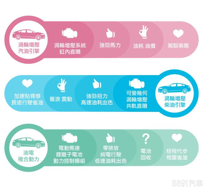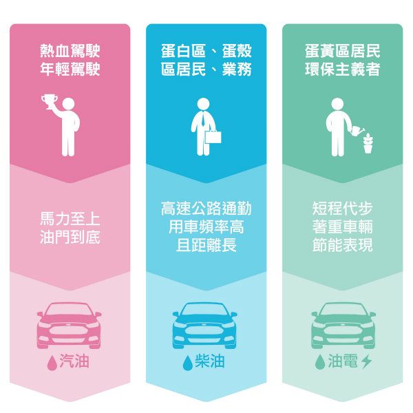綜觀全球車市,在相對成熟的歐美車廠當中,多元動力選擇已成為半客制化的服務,除了提供主流的汽油動力,更加入柴油動力、油電複合動力。然而,汽油車動力好,柴油車省油,油電車環保,消費者究竟該如何選擇適合自己的動力,避免「選擇焦慮症」發作呢?